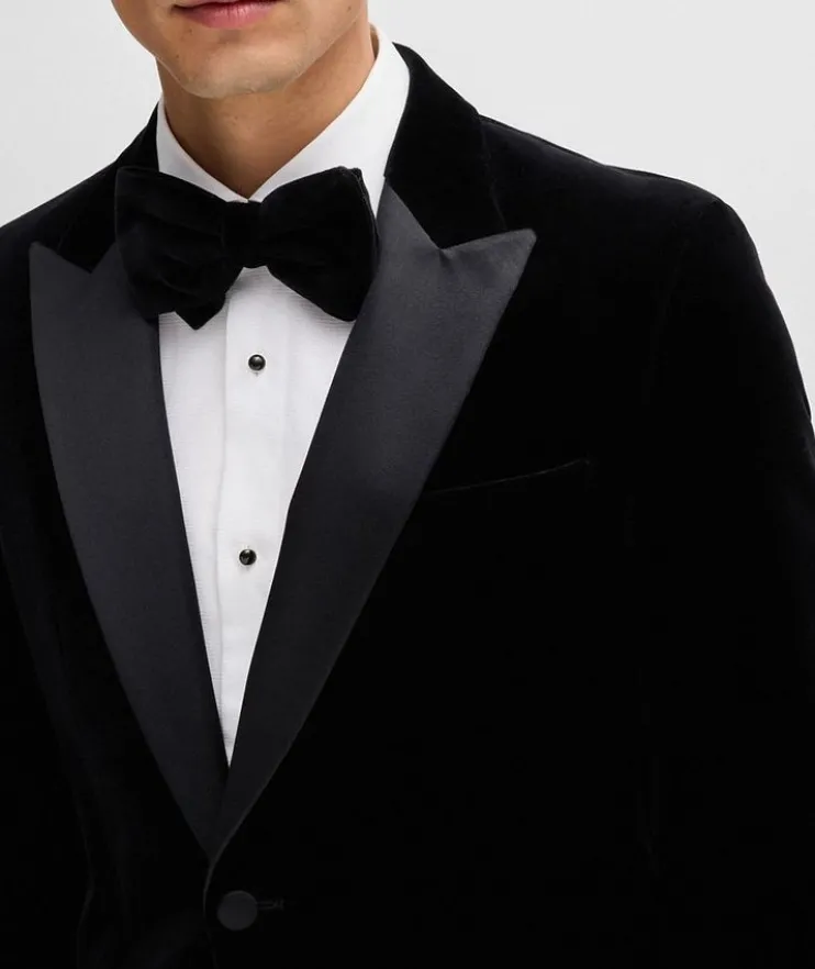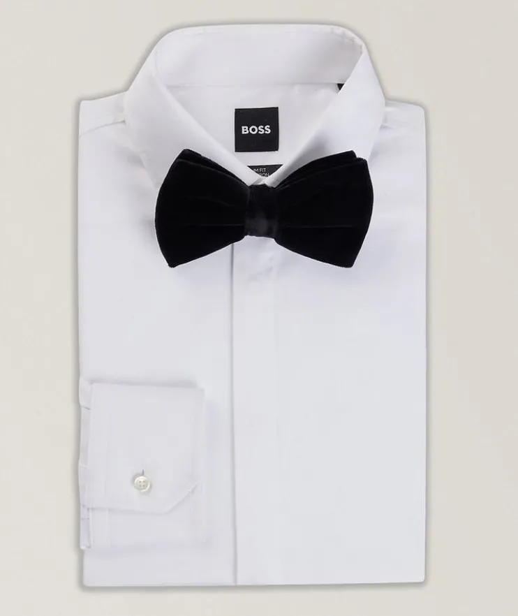 - An evening-ready bow tie by BOSS. This pre-tied accessory is crafted in soft cotton velvet with a rich sheen for a plush look.