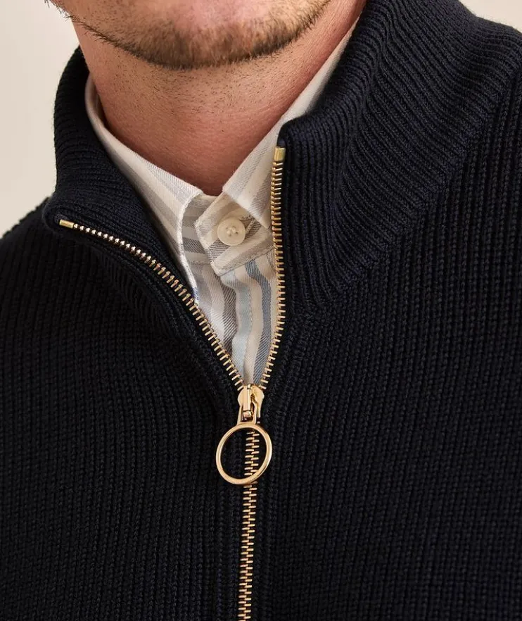 - A cozy layering piece for any occasion, this relaxed knit cardigan is fashioned in machine washable virgin wool-blend and boasts a two-way zip fastening with engraved goldtone hardware for versatile styling options.