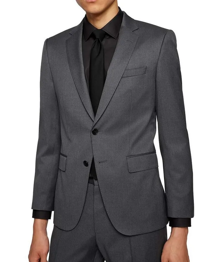- This single-breasted, two-button suit jacket from BOSS will instantly elevate any tailored ensemble. It’s crafted from subtly textured serge-woven wool that is sure to be a suave option in any setting you wear it to. The versatile jacket can be paired with a variety of suiting separates, chinos, and denim jeans.
