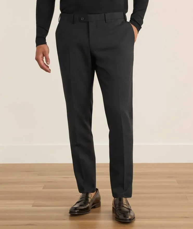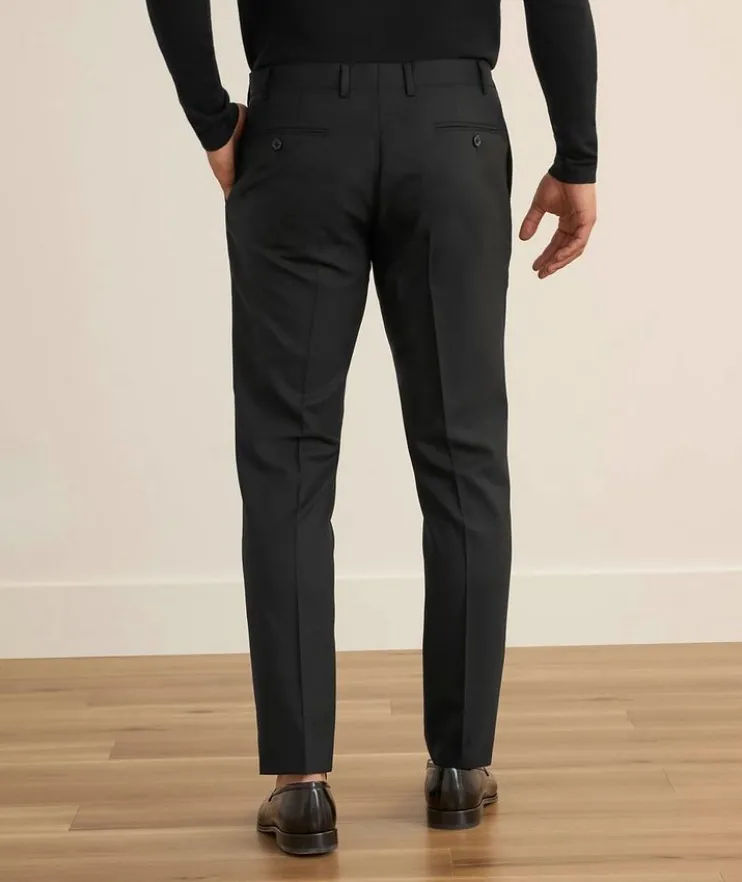Elevate your business and formal wardrobe with these classic suit pants crafted in luxurious virgin wool and tailored with front and back pockets for a sophisticated silhouette.