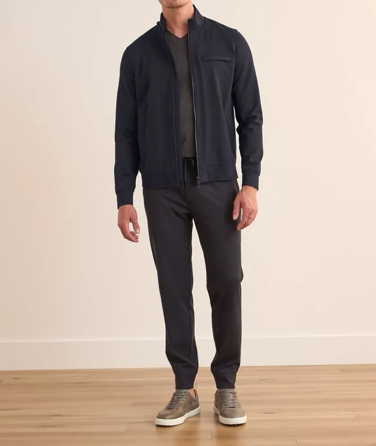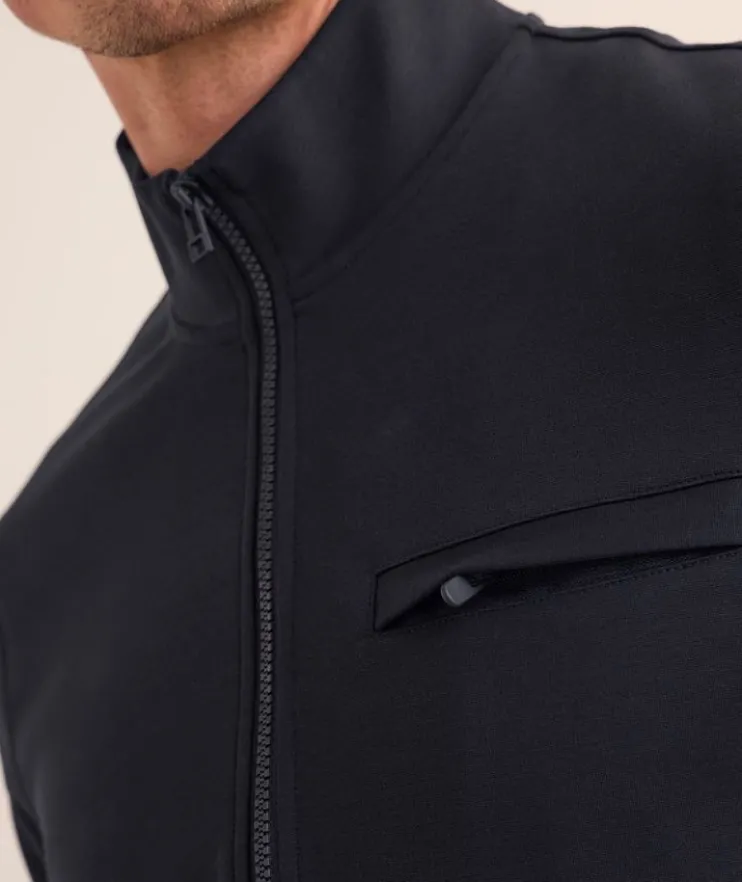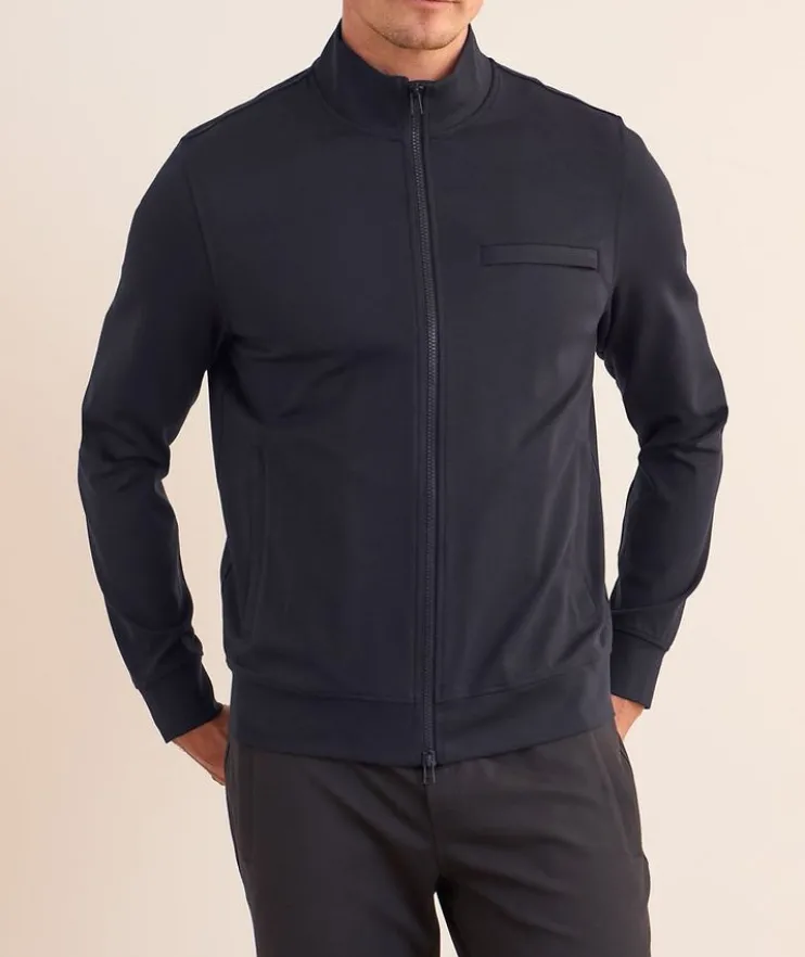 - A lightweight layer, this casual topper is crafted in a smooth, stretch knit and features a two-way front zipper closure and handy zip pockets.