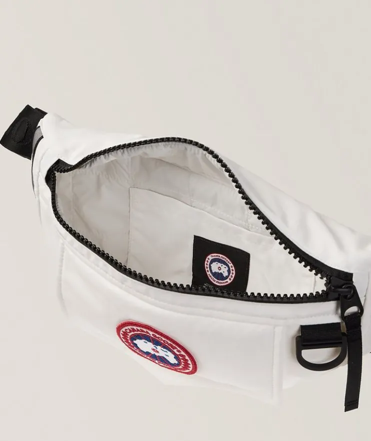 - Carry it all hands-free with this Waist Pack from Canada Goose. Made in Canada, the technical fabric accessory easily converts into a clutch with the brand’s Heritage inspired co-branded grabstrap. It’s CORDURA® water-repellent property ensure all your belongings are prone to abrasion and for added overall durability in the toughest environments. The long adjustable strap means it can be worn around the waist or cross body for versatility and convenience.