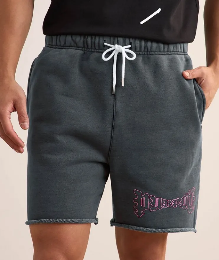 - Depicting the brand’s logo in a contrast gothic design, these raw-hem shorts with slight flared leg are cut from heavyweight cotton and feature special coatings, abrasions and repairing that will wear in naturally over time.