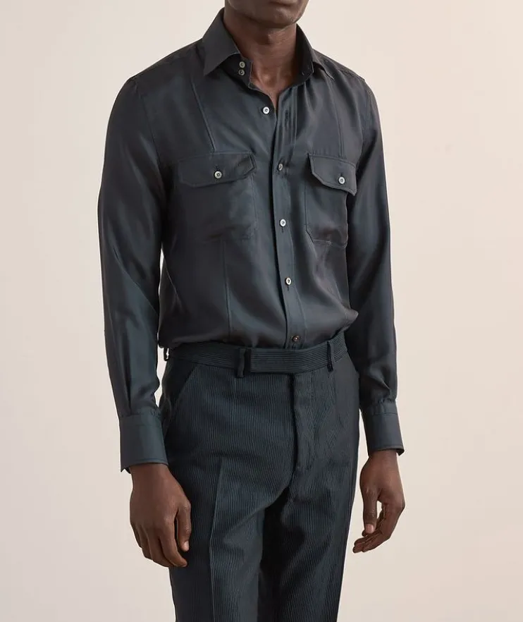 - This shirt has been crafted in a slim fit, designed to sit close against the body.