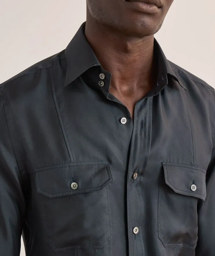 - Chest flap pockets with button closure