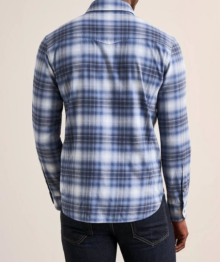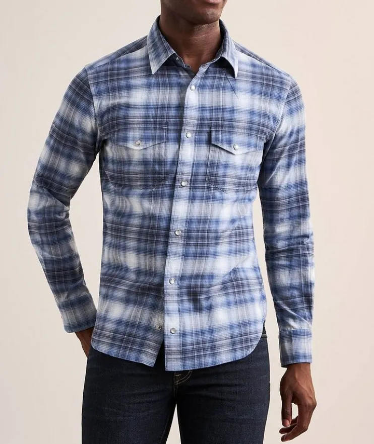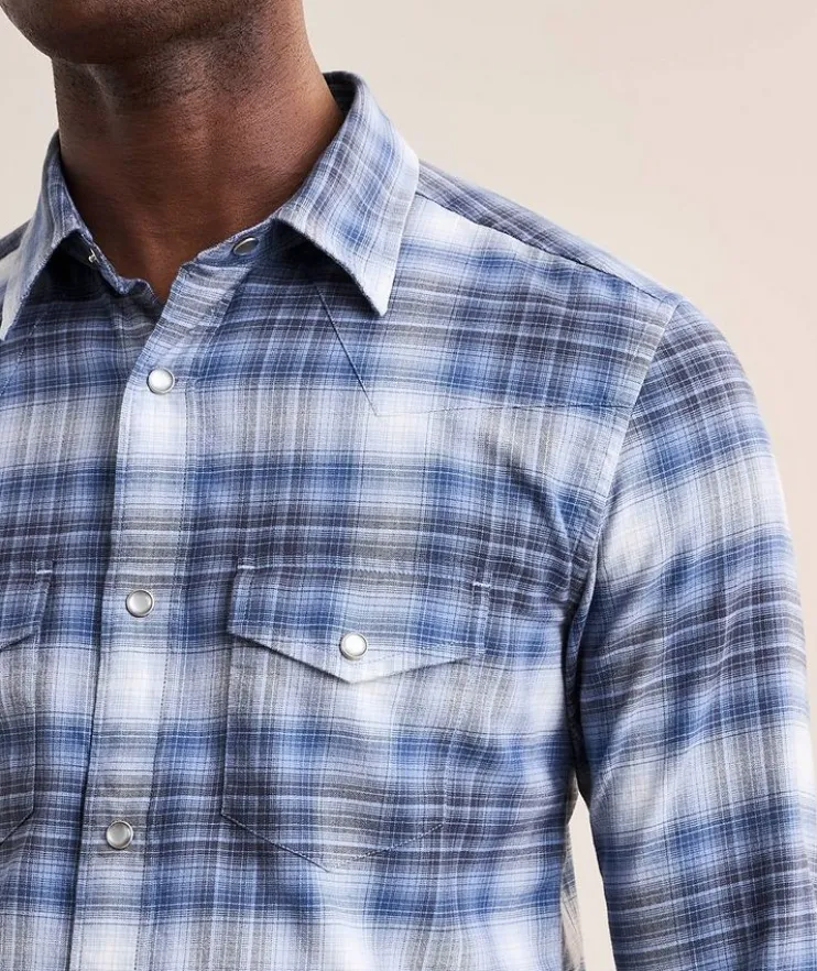 - This Western-inspired shirt is constructed from breathable cotton with a tonal checked pattern. Cut in a slim fit with back darts to create a flattering silhouette.