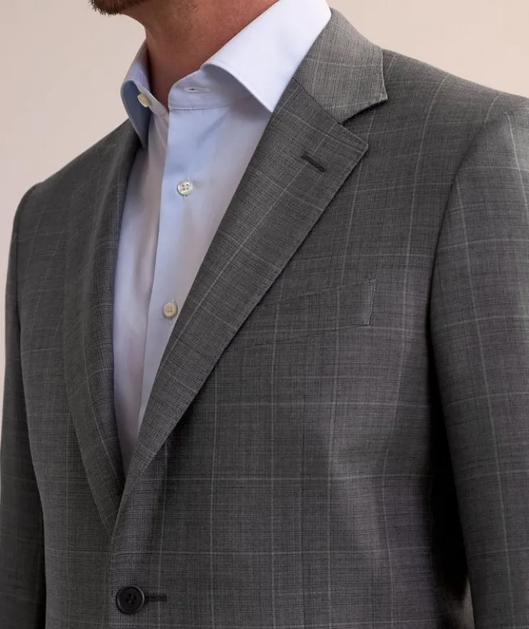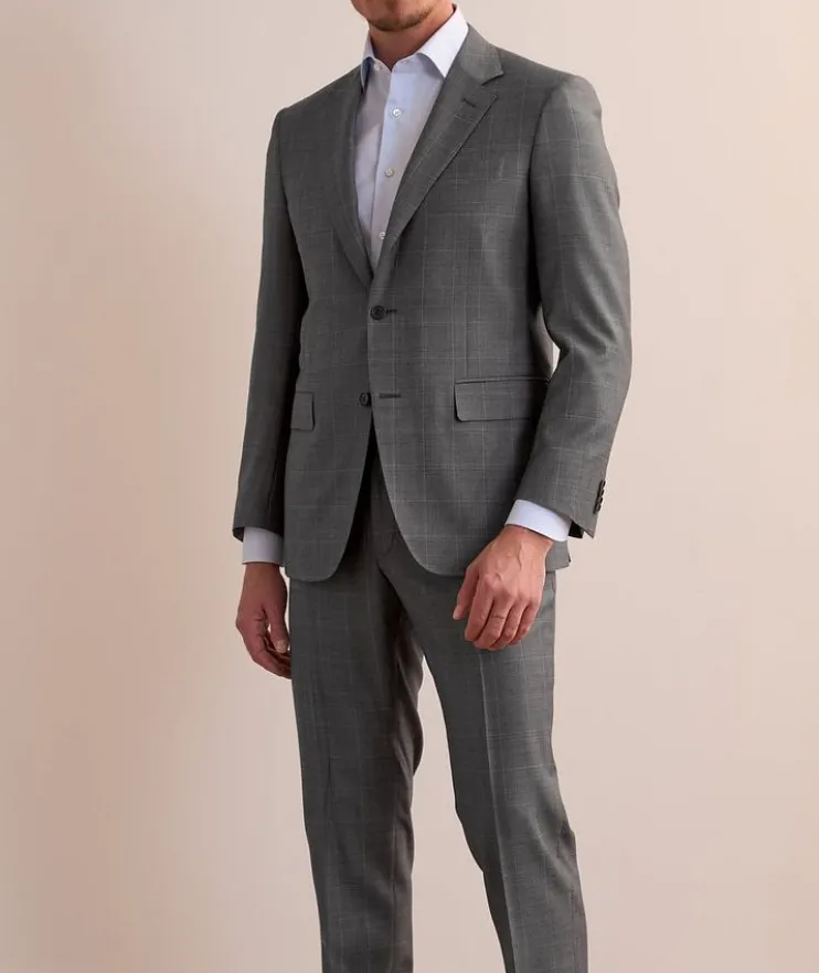 - This suit has been crafted in a regular fit, designed to sit naturally against the body.