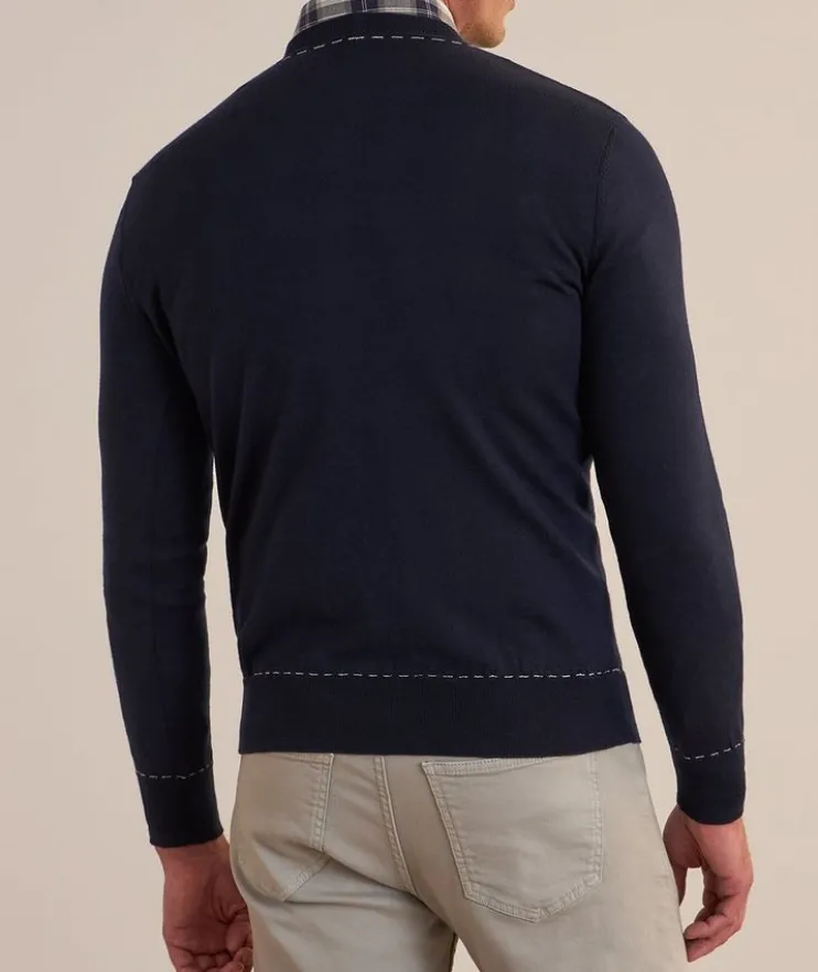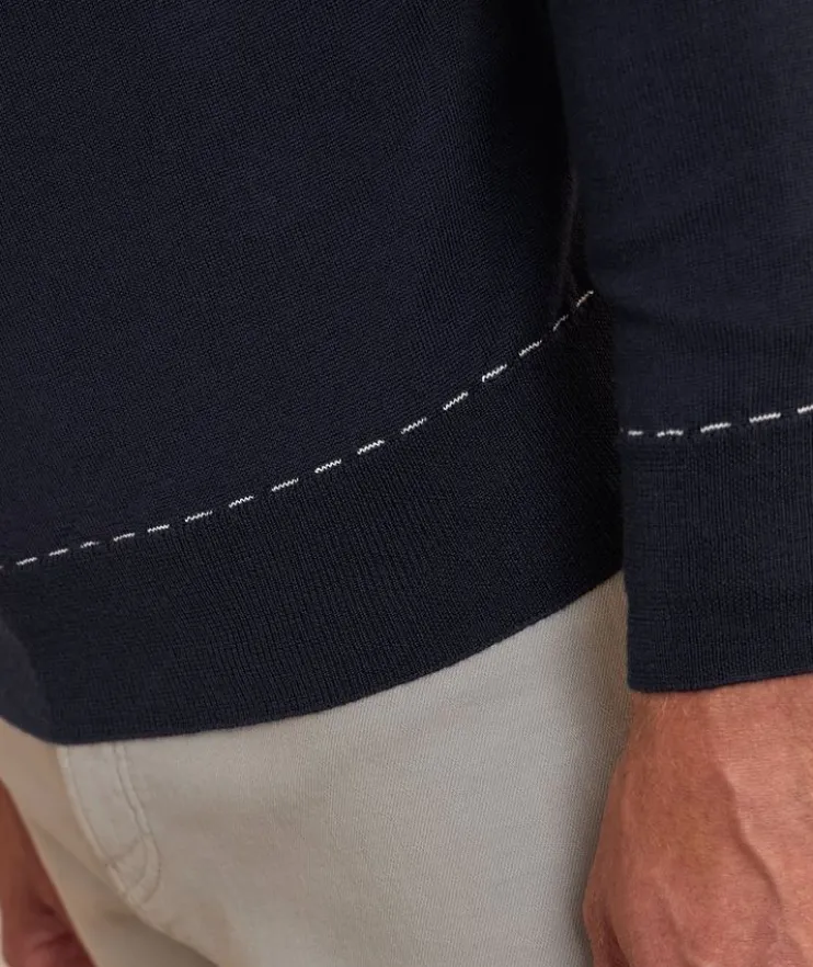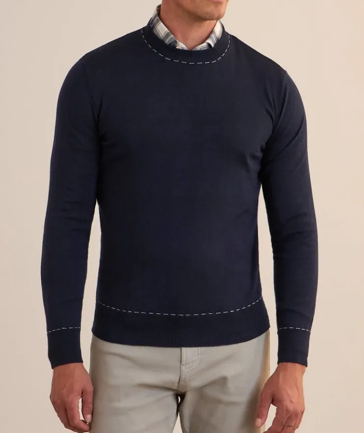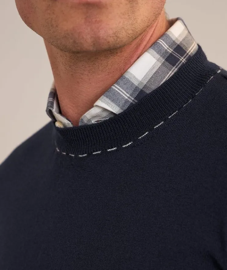 - This classic crewneck sweater is decorated with contrast stitch detailing at the neckline, cuffs and hem. Crafted from soft, lightweight wool, this sweater is an elevated basic year-round.