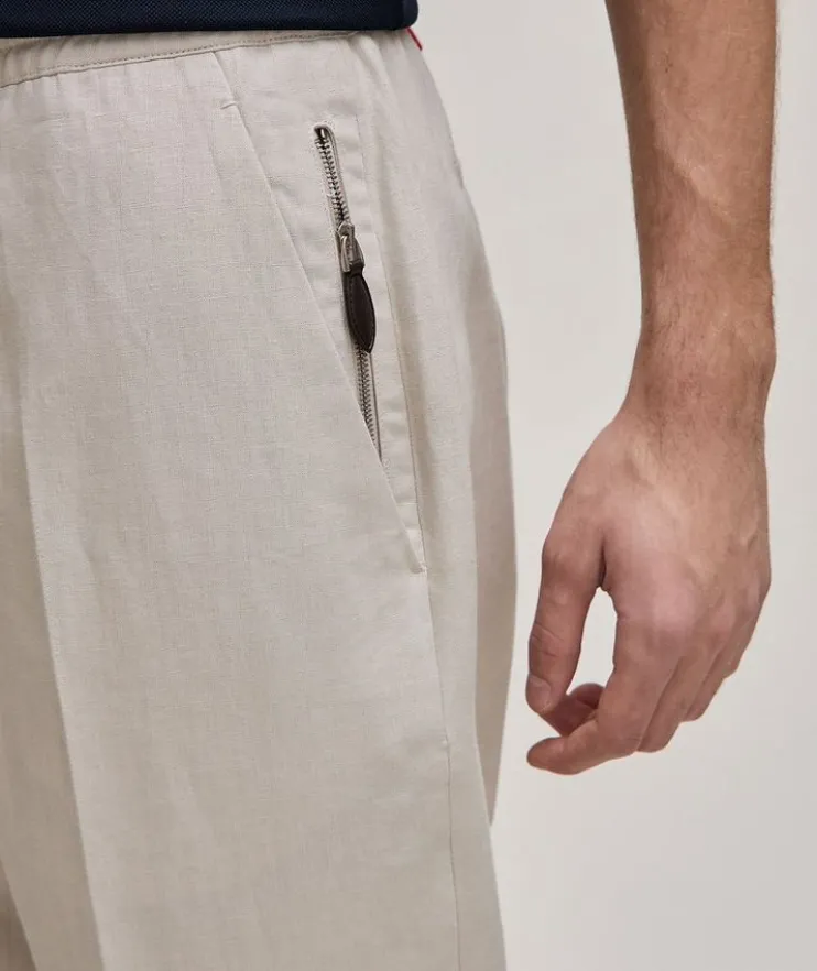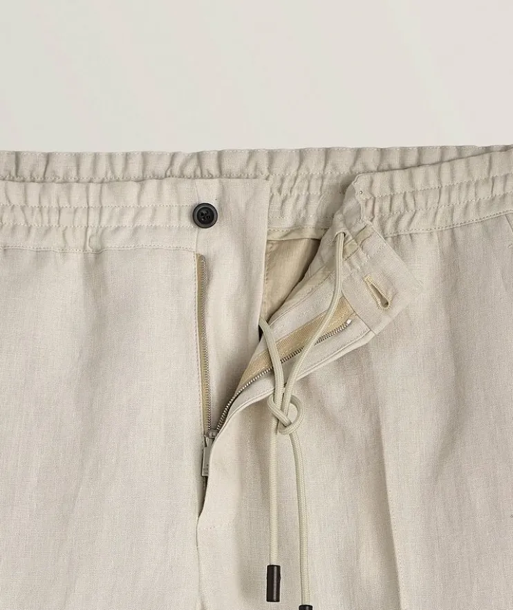 - Nylon drawcord at the waist with leather end cords
