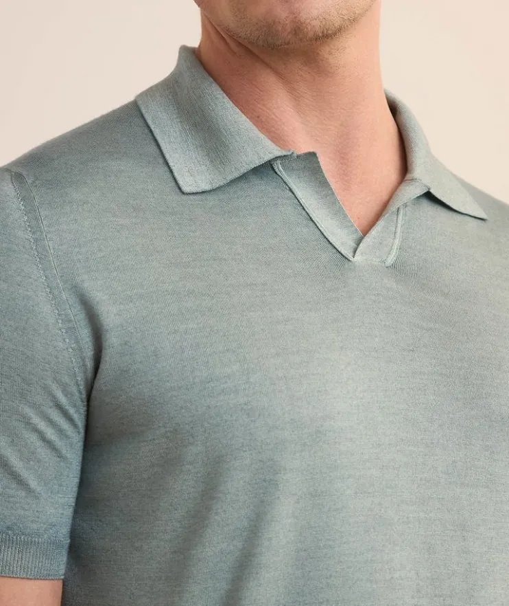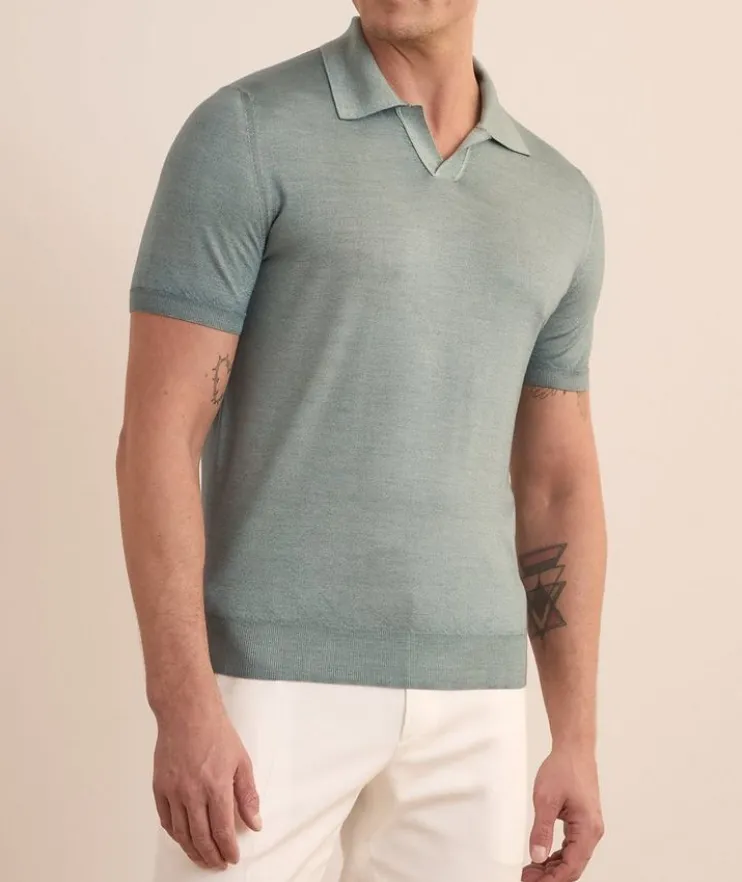 - Fashioned in refined, natural yarns for a casual feel, this sumptuous wool and silk-blend polo is specially treated using artisan processes for a unique finish. The open collar design adds a relaxed element and modern touch.