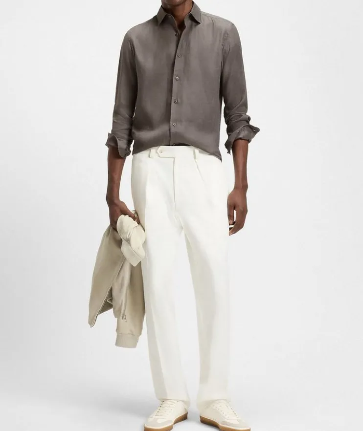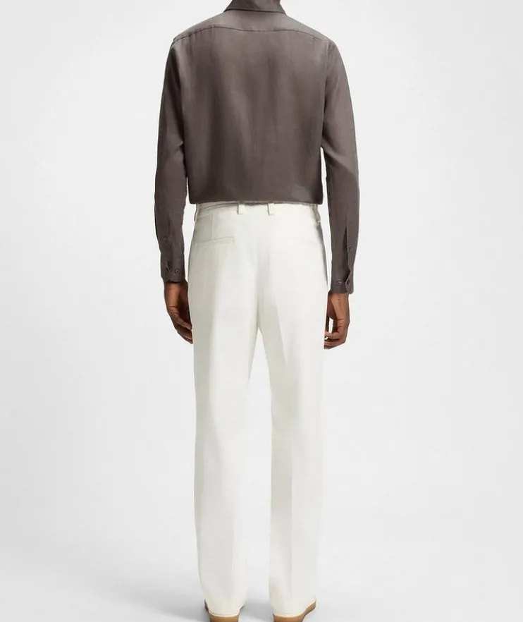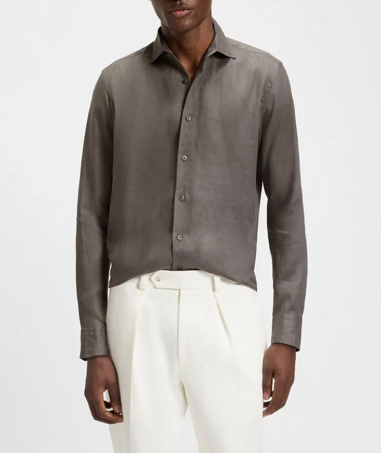 - From the Beckham x BOSS Collaboration. A year-round staple, this classic button-down shirt is crafted from linen with natural temperature regulation and finished with timeless details for enduring style.