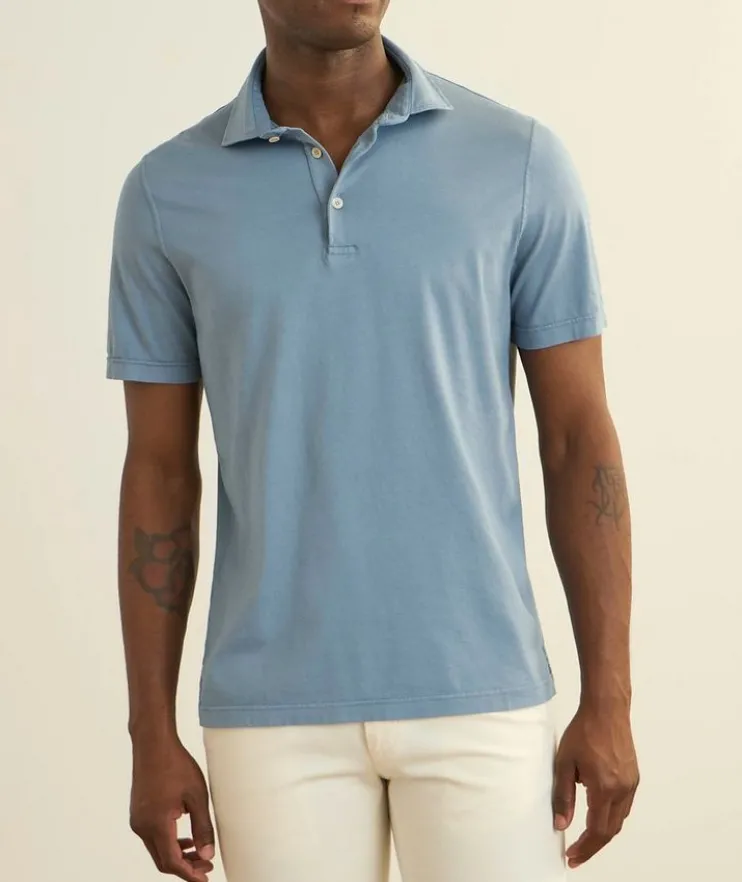 - Crafted from 100% Giza organic cotton, this classic short-sleeved polo is exceptionally soft and easy to dress up or down for a variety of occasions. Crafted in Italy, it features a solid design with Mother-of-pearl buttons for an elevated finish.